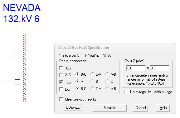 You may be tempted to perform a Classical Bus Fault at Nevada, check “With Outage” and press Simulate…