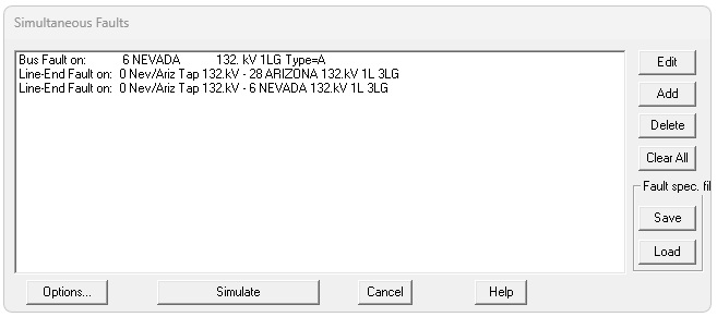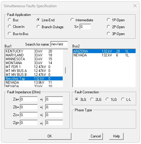 Press OK, then Add another and do the end that is Nev/Ariz Tap to Nevada, and press OK. Your Simultaneous Faults window should now look like this: